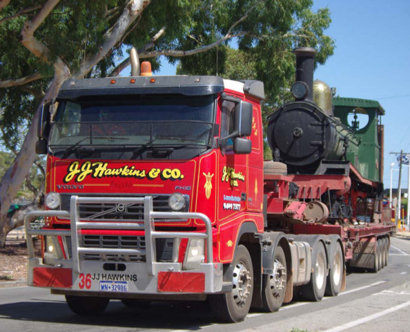 The latest addition to The Railway Museum at Bassendean is locomotive R174.In March 1907, this locomotive was involved in the WA's most epic mine rescue in which Italian miner Modesto Varischetti became trapped over 300m down in a flooded mine at Bonnie Vale, near Coolgardie. R174 pulled the special train, carrying two divers, their assistants and equipment plus 800ft of air piping, from Northam to Southern Cross. The R class locomotives were the premier express passenger and mail locomotives in their day, and worked on the Eastern Goldfields and Northern Railways until the 1920s. Then they mainly worked on freight trains. The 4ft 9in (145cm) driving wheels were the largest ever used on the Western Australian Government Railways (WAGR). R174 was restored for display outside the Railway Institute building at Midland. R174 was there from March 1956 until October 1972 when it was moved to the Centrepoint shopping mall. With imminent redevelopment of the shopping centre, proprietors the Stefanelli family offered R174 to our museum for preservation. Family representative Mr Joe Stefanelli explained that they understood the significance of R174 and wanted to ensure it's preservation. The proprietors generously offered to assist this move by donating transport costs.