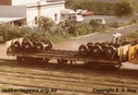 P01260173 viewsQRC class 6941 flat top container wagon, brown livery, side view, water column in the background, Leighton, ER line.