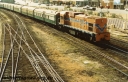 P18070156 viewsXA class 1413 "YABAROO" on passenger service, pedestrian overpass, Perth city station, c1983