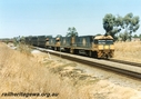 P15515111 viewsP class 2006 "Shire of Quairading" double heading with a DA class loco, wheat train northwards through Hazelmere, view along the train.