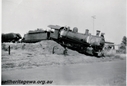 P16149156 viewsL class steam loco derailed at Brunswick Junction, SWR line, loco overhanging the end of the track. An ASG class loco in the background. (ref: "The West Australian" 26.2.1949, p.17)