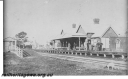 P16960145 viewsFirst Guildford railway station, platforms, station buildings, overhead footbridge, passengers waiting, Guildford, ER line, built 1884 for 1259 pounds 9 shillings by Philip Reilly