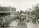 P05794197 viewsPerth Station forecourt, tracklaying demonstration, large crowd looking on, looking east