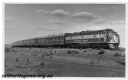 P20123160 viewsCommonwealth Railways (CR) GM class diesel, with nose festooned with national flags, on the new Trans-Australian train consisting of Wegmann carriages, inaugural run, TAR line, side and front view
