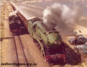 P2050077 viewsDD Class 592 and NSWGR C38 Class 3801, on special passenger trains, parallel running between Spearwood and Fremantle, Western Endeavour tour, FA line, front view from elevated position