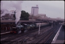 T0805855 viewsDD Class 592, in undercoat, preparing for a light engine steam trial to Armadale, Perth Yard, Perth Box B signal cabin, semaphore bracket signal, ER line