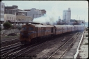 T0817344 viewsXA Class 1415 "Wurara", Down suburban passenger service, departing City Station, ADX Class railcar and three ADA Class trailers in consist, Pier Street pedestrian crossing, searchlight signal gantry, semaphore bracket signals, Perth, ER line