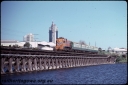 T0846745 viewsADK/ADB/ADK/ADB Class railcar set, Up suburban passenger service, Swan River Bridge, steel girder, concrete pylon, Fremantle, ER line