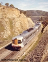 P00492351 viewsProspector three car railcar set, orange front, Windmill Hill Cutting, Avon Valley line, elevated view