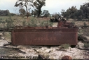 P13433241 viewsTender from Bunnings loco "Leonora", ex WAGR first D class 6, abandoned in a paddock near the Westwood siding, PN line, side and front view.