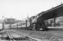 P02474241 viewsP class on the "Eastern Express" arriving at the main platform of Perth Station, Tram crossing the Barrack Street Bridge with an advertisement for the "Metropolitan Dental Company"